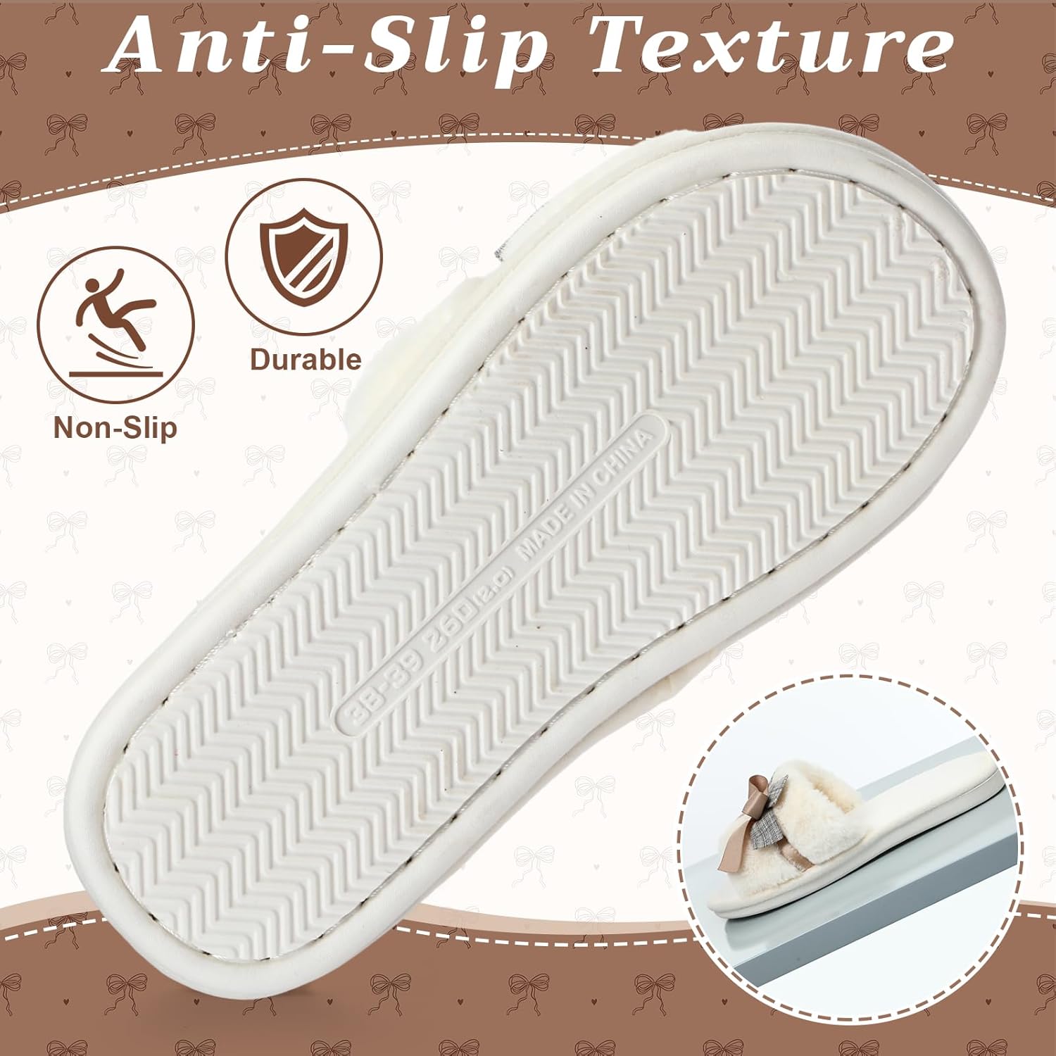 These slippers are absolutely adorable and elegant at the same time. The faux fur feels very soft and cozy, and the bow detail gives them a classy look that is perfect for photos and special occasions. The colors look just like the pictures, and the overall design makes them feel much more “luxury” than typical house slippers.I bought the pack of six to use for guests and they were a total hit. Everyone commented on how comfortable they felt thanks to the cushioned sole, and they’re light enough to walk around the house without feeling bulky. They arrived well packaged, clean, and ready to use, which is great if you’re preparing for a party, bridesmaids, sleepover or just want matching slippers for visitors at home. I’m very happy with this set and would definitely buy it again.